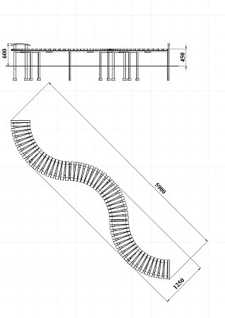 Лавочка - разборная конструкция в форме волны, состоит из металлических ножек, металлического каркаса сидения и деревянного бруса. Ножки и сидения крепятся друг другу через болтовые соединения.