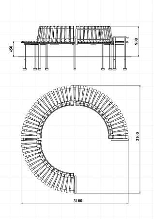 Лавочка - разборная конструкция в форме трёх четвертей круга, состоит из металлических ножек, металлического каркаса сидения, металлического каркаса спинки и деревянного бруса. Ножки, сидения и спинки крепятся друг другу через болтовые соединения.