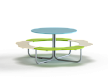 Столик в форме ромашки состоит из металокаркаса, фанерных сидений и столешницы.