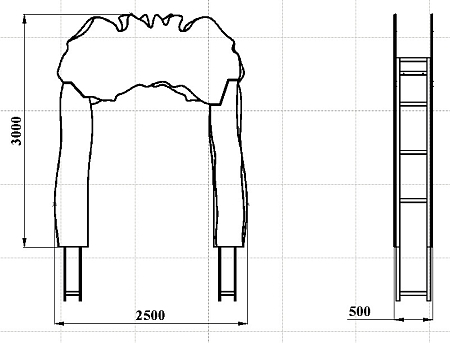 Арка выполнена в виде сборного металлокаркаса с фанерными накладками с художественным оформлением в лесной тематике.