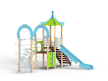 Детский игровой комплекс состоит из двух разновысоких башен. На одной из башен установлены крыша, лестница, горка, металлическое ограждение, на другой башне установлены альпинистская стенка, перекладина с канатом, ручки, спираль наклонная, ограждение с лазом. Одна из башен имеет продолжение в виде гимнастического комплекса который состоит из рукохода, шведской стенки, шеста-спирали и двух фанерных арок.