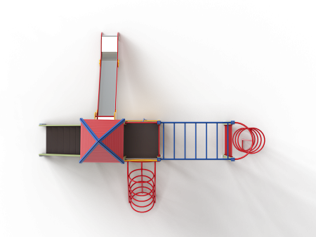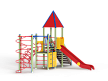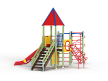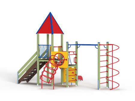 Детский игровой комплекс состоит из двух разновысоких башен. На одной из башен установлены крыша в форме пирамиды, лестница, горка, металлическое ограждение, на другой башне установлены альпинистская стенка, перекладина с канатом, спираль наклонная, ограждение с лазом. Одна из башен имеет продолжение в виде гимнастического комплекса,который состоит из рукохода, шведской стенки и шеста-спирали.