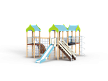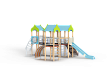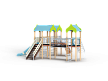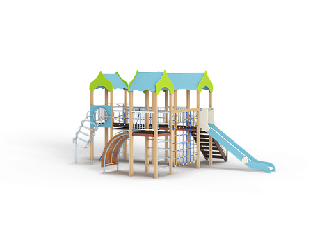 Детский игровой комплекс состоит из трех башен. На первой башне установлены альпинистская стенка с перекладиной и канатом, шест прямой, ограждение из бруса с перекладинами и шведская стенка. На второй башне установлена лестница, горка и два ограждения из бруса с перекладинами . Первая и вторая башня соединяются полипропиленовой сеткой. На третьей башне установлено ограждение из бруса с перекладинами, шест спираль и спираль наклонная. Вторая и третья башни соединены подвесным мостом.
