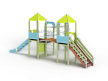 Детский игровой комплекс состоит из двух башен и одной полубашни с вынесенной шведской стенкой. На первой башне с полубашней установлена альпинистская стенка с перекладиной и канатом, ограждение металлическое, вспомогательные ручки, шведская стенка и примыкающий к ней рукоход с вынесенной шведской стенкой, две декоративные арки, со стороны вынесенной шведской стенки установлен шест спираль. На второй башне установлена горка, крыша и ограждение. На третьей башне установлена крыша, лестница, ограждение и спираль наклонная. Вторая и третья башня соединены радиусным мостом с металлическими перилами.