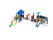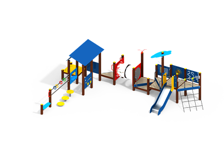 Комплекс выполнен в виде комбинации башен с треугольными и прямоугольными площадками из бруса. На комплексе установлено наполнения в виде: стенок с подвижными элементами, стенки с окном и столиком, ручек, шагохода, столика, сетки, горки, перекладины с накладками и тунельного перехода, выполненного из прозрачного высокопрочного пластика. Металлические элементы комплекса выполнены из стали с оцинкованным покрытием. Оцинковка металла производится методом электрохимической гальванизации. Скат горки выполнен из нержавеющей стали. Деревянные столбы выполнены из тщательно отшлифованной древесины и окрашены высококачественным лаковым покрытием. Сетки изготовлены из многожильного армированного износостойкого каната. Стенки, ограждения, крыши, столики, борта и ограждения горки выполнены из HPL пластика.