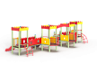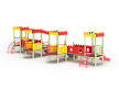 Детский игровой комплекс состоит из четырёх ба-шен с крышами. На первой башне установлена горка, перекладина, лиана и ограждение фанерное с декоративными накладками. На второй башне установлено ограждение фанерное с декоративными накладками, лестница, перекладины, балкон. На третьей башне установлено ограждение фанерное с декоративными накладками, лестница, перекладины, балкон. На четвертой башне установлена горка, перекладина, лиана и ограждение фанерное с декоративными накладками. Первая башня соединена со второй прямым мостом с фанерными перилами, третья соединяется с четвертой прямым мостом с фанерными перилами. Между второй и третьей башней установлена декоративная зубчатая фанерная арка, на уровне фасадов крыш.