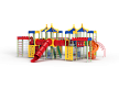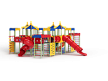 Детский игровой комплекс состоит из восьми башен с крышами. Башни расположены в форме квадрата. На первой башне установлены перекладины, шест с пластиковыми колесами, ручки вспомогательные, альпинистская стенка с перекладиной и канатом. На второй башне установлены перекладина, трап, ограждение фанерное и металлическое. На третьей башне установлены лиана, ручки вспомогательные, перекладина, альпинистская стенка с перекладиной и канатом. На четвертой башне установлена горка пластиковая винтовая, балкон. На пятой башне установлены перекладины, альпинистская стенка с перекладиной и канатом. Сбоку пятая башня имеет продолжение в виде спортивного комплекса с полипропиленовой сеткой, шведской стенкой, декоративными накладками и рукоходом. На шестой башне установлена пластиковая горка-труба, ограждение металлическое и лестница. На седьмой башне установлены перекладины, ручки вспомогательные, альпинистская стенка с перекладиной и канатом. Сбоку седьмая башня имеет продолжение в виде спортивного комплекса с полипропиленовой сеткой, шведской стенкой, фанерными накладками и рукоходом. На восьмой башне установлена винтовая пластиковая горка-труба и балкон.