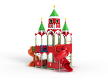 Детский игровой комплекс выполнен двухъярусным и стилизованных в виде Кремля. На первом ярусе должны быть установлены фанерные ограждения с декоративными накладками и сидения. На втором ярусе должны располагаться горка пластиковая винтовая, горка-труба пластиковая винтовая, четыре крыши, фанерные ограждения с декоративными накладками, перекладины, шест с пластиковыми колесами, сидения и лиана. Вход на второй ярус должен осуществляться через лестницу со стороны улицы.