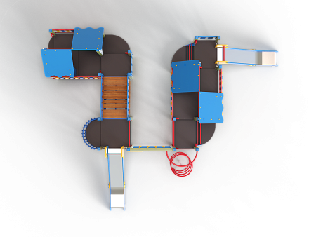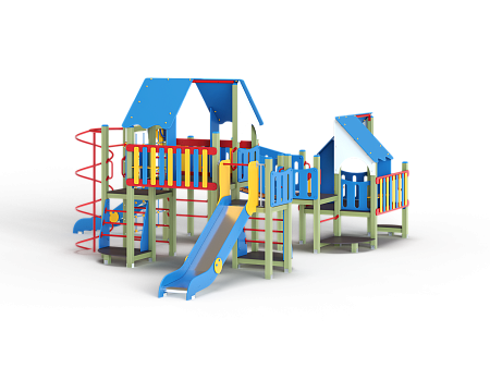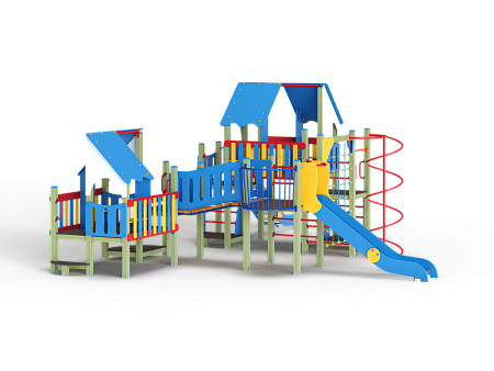 Детский игровой комплекс состоит из шести разновысоких башен и стилизован в цветах службы ДПС. На первой башне установлена лестница, горка, фанерное ограждение и ручки вспомогательные. На второй сдвоенной башне, установлены фанерные ограждения и крыша. На третьей башне установлены фанерное ограждение, шест спираль, лестница и ручки вспомогательные. На четвертой башне установлены горка и балкон. На пятой башне установлено фанерное ограждение, лестница, вспомогательные ручки. На шестой сдвоенной установлены фанерные ограждения и крыша. Третья и четвертая башни соединены сеткой полипропиленовой, четвертая и пятая наклонным мостом с фанерными перилами.