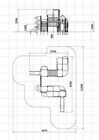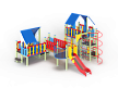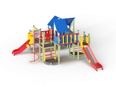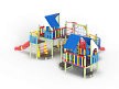Детский игровой комплекс состоит из шести разновысоких башен. На первой башне установлена лестница, горка, фанерное ограждение и ручки вспомогательные. На второй сдвоенной башне, установлены фанерные ограждения и крыша. На третьей башне установлены фанерное ограждение, шест спираль, лестница и ручки вспомогательные. На четвертой башне установлены горка и балкон. На пятой башне установлено фанерное ограждение, лестница, вспомогательные ручки. На шестой сдвоенной установлены фанерные ограждения и крыша. Третья и четвертая башни соединены сеткой полипропиленовой, четвертая и пятая прямым мостом с фанерными перилами.