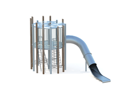 Комплекс состоит из стальных окрашеных столбов, перекладин покрытых в два слоя порошковой полимерной краской. Деревянных столбов и брёвнен выполненых из лиственницы, имеют естественную природную форму, тщательно отшлифованых и обладающих высочайшей прочностью. Сетки и канаты изготовлены из многожильного армированного износостойкого каната. Горки из нержавеющей стали. Различных эелементов выполненых из HDPE пластика.