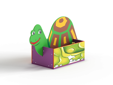 Ящик для хранения игрового инвентаря выполнен в виде веселой черепашки. Создавая функциональное место хранения, он придает игровой площадке яркий вид.