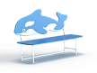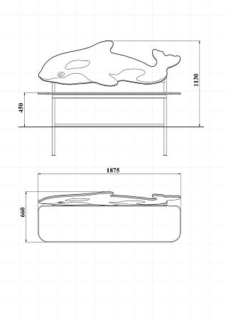 Лавочка со спинкой выполнена из металлокаркаса, фанерного сидения и фанерной спинки в форме касатки с художественным оформлением.