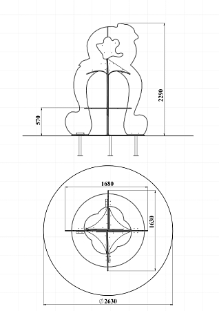 Столик с навесом выполнен из фанеры в форме осьминога с художественно оформленной поверхностью.