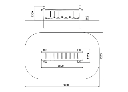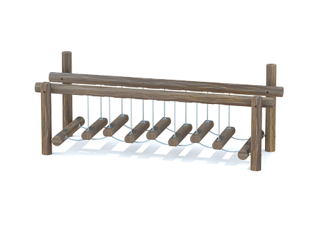 Комплекс состоит из четырех опорных столбов к которым крепится качающийся переход из брёвен.
