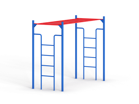 Спортивный комплекс выполнен из металлического каркаса состоящего из трех частей: двух боковых стоек с лестницами и рукохода.