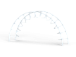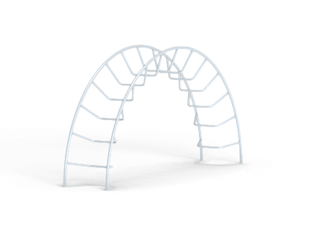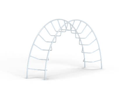 Спортивный комплекс выполен в виде дугообразного металлокаркаса с изогнутыми ступенями.