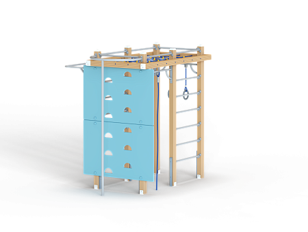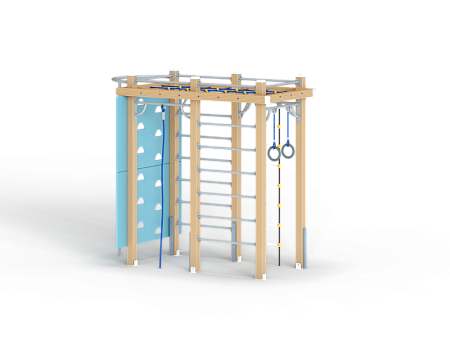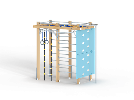 Спортивный комплекс оборудован шестом, шведскими стенками, кольцами гимнастическими, канатом, лестницей полипропиленовой, горизонтальной сеткой полипропиленоыой, двумя альпинисткими стенками, перекладинами и турником приставным.