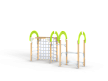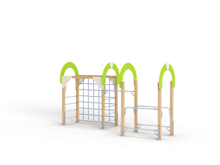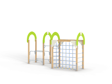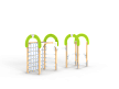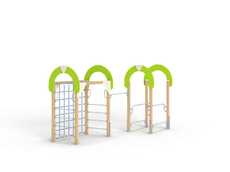 Спортивный комплекс оборудован рукоходом, четырьмя фанерными декоративными арками, шведскими стенками, брусьями межстолбовыми, перекладинами, сеткой полипропиленовой вертикальной и ручками вспомогательными.