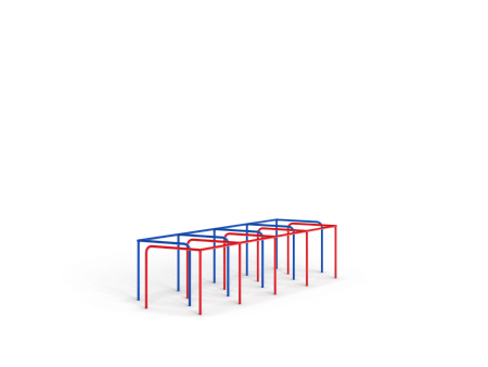 Спортивный комплекс выполнен из металлического каркаса, в форме лабиринта.