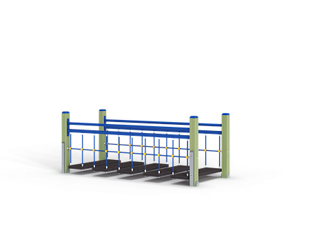 Спортивный комплекс состоит из подвесного качающегося моста, установленного на четырех несущих столбах.