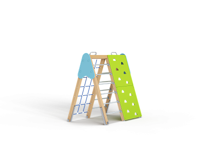Спортивный комплекс состоит из наклонной полипропиленовой сетки, ручек вспомогательных, двух наклонных шведских стенок и двух наклонных альпинистских стенок, крепящихся на несущие столбы.