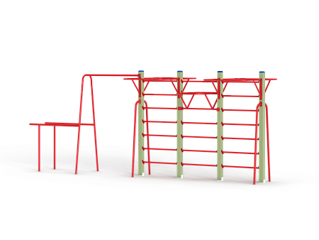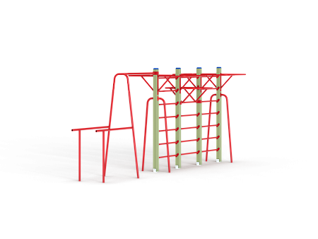 Спортивный комплекс состоит из каскада шведских стенок, турников и гимнастических брусьев.