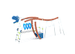 Универсальный комплекс состоит из гимнастического оборудования, пяти изогнутых деревянных стоек, лазов с отверстиями, стенок с камнями для лазания, декоративных элементов и площадки. Элементы комплекса скомпанованы в виде динозавра, передняя декоративная накладка имеет форму головы динозавра. Все металлические гимнастические элементы выполнены из стали с оцинкованным покрытием. Оцинковка металла производится методом электрохимической гальванизации. Деревянные стойки выполнены из тщательно отшлифованной древесины высочайшей прочности и окрашены высококачественным лаковым покрытием. Лазы с отверстиями выполнены из высококачественного пластика. Сетки изготовлены из многожильного армированного износостойкого каната. Площадка выполнена из экструдированного высокомолекулярного полиэтилена, декоративные элементы и стенка для камней выполнены из HPL пластика.