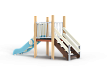 Комплекс состоит из башни с горкой с высотой ската 900 мм, лестницы и двух металлических ограждений