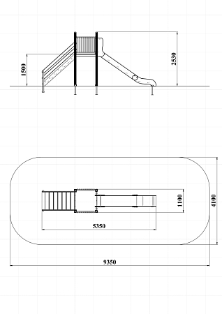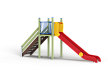 Комплекс состоит из башни с горкой с высотой ската 1500 мм, лестницы и двух металлических ограждений