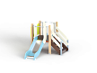 Комплекс состоит из башни с двумя горками с высотой ската 700 мм, лестницы и фанерного ограждения.