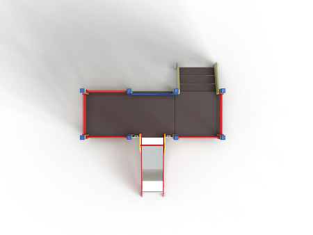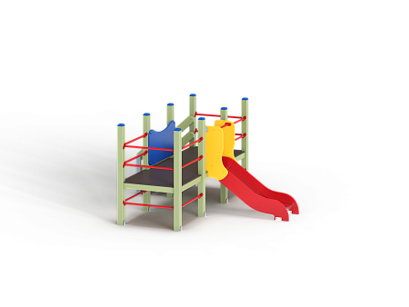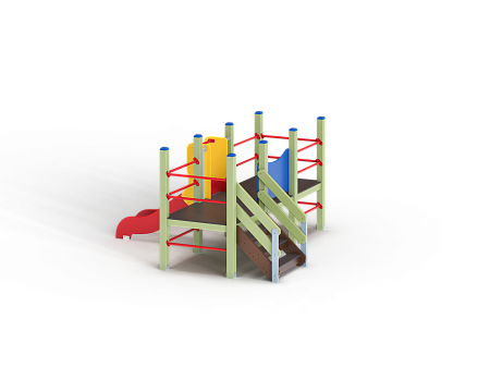 Манеж состоит из башни с горкой с высотой ската 700 мм, лестницы, металлических перекладин и фанерного ограждения.
