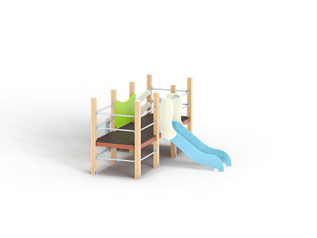 Манеж состоит из башни с горкой с высотой ската 700 мм, лестницы, металлических перекладин и фанерного ограждения.