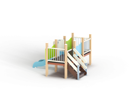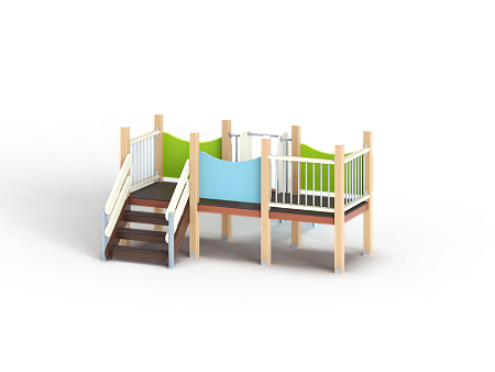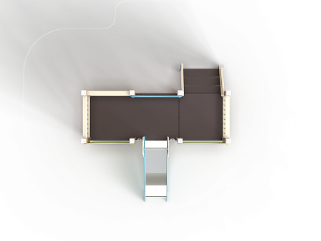 Манеж состоит из башни с горкой с высотой ската 700 мм, лестницы и фанерных ограждений по периметру.