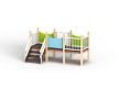 Манеж состоит из башни с горкой с высотой ската 700 мм, лестницы и фанерных ограждений по периметру.