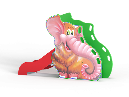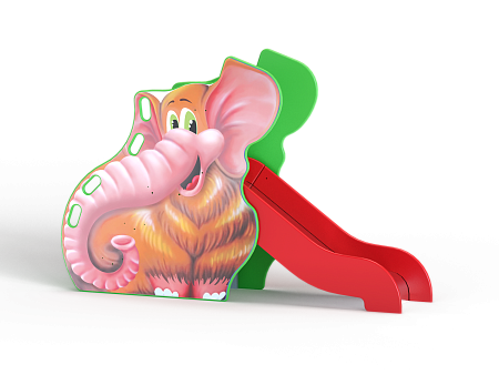 Горка с высотой ската 700 мм имеет перила в виде слоненка с ручной художественной росписью.