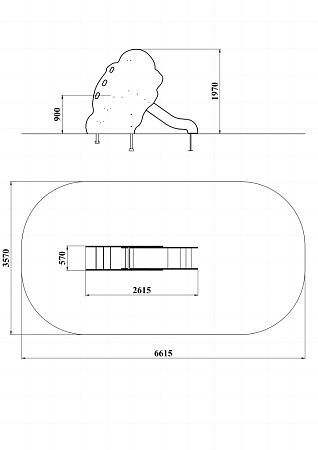 Горка с высотой ската 900 мм имеет перила в виде мамонтенка с ручной художественной росписью.