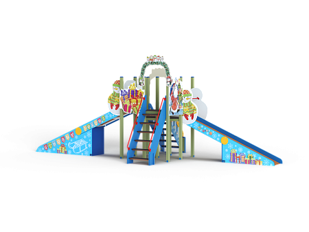 Комплекс состоит из башен с двумя зимними горками с высотой ската 1500 и 1800 мм, двух лестниц, декоративных арок и фанерных ограждений. Комплекс стилизован в новогодней тематике с ручной художественной росписью и устанавливается с помощью металлических опорных каркасов.