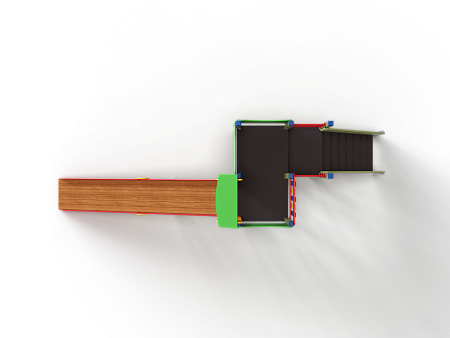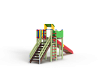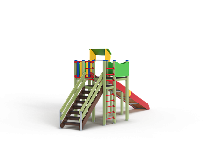 Комплекс состоит из башен с зимней горкой с высотой ската 1800 мм, лестницы, перекладин и фанерных ограждений.