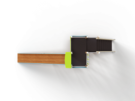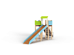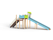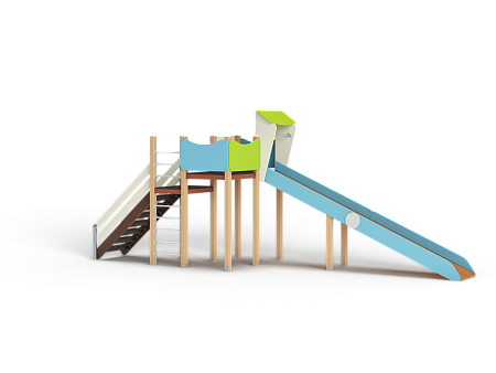 Комплекс состоит из башен с зимней горкой с высотой ската 1800 мм, лестницы, перекладин и фанерных ограждений.