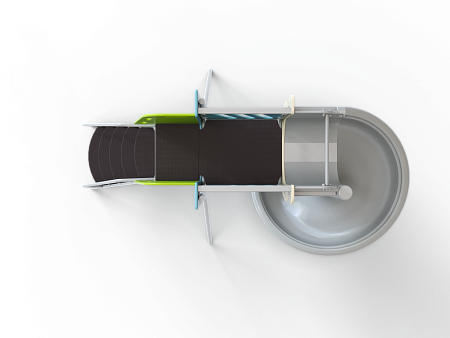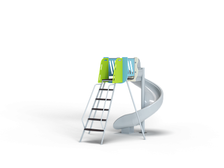 Горка пластиковая винтовая, высота ската 1800 мм. Оборудована лестницей, мостиком и опорными металлическими стойками.