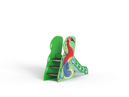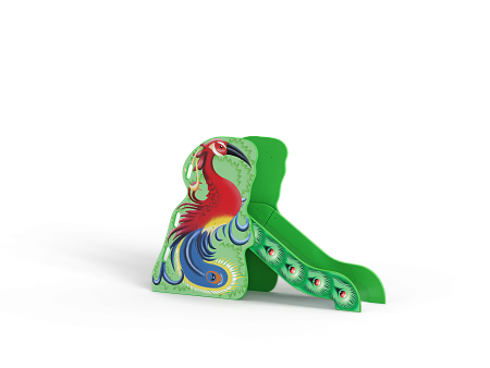 Горка с высотой ската 700 мм имеет перила в виде птицы с ручной художественной росписью.