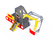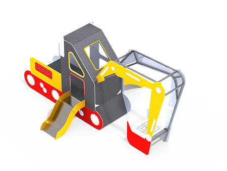 Комплекс состоит из каркаса с площадками, каркаса стрелы и ковша, горки, трапа и ограждений в виде деталей экскаватора. Каркасы выполнены из нержавеющего металла. Ограждения выполнены из HPL пластика. Площадки и трап выполнены из экструдированного высокомолекулярного полиэтилена. Скат горки выполнен из нержавеющей стали.