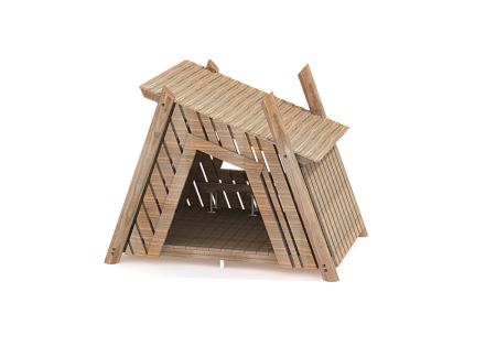 Первый - деревянные столбы и брёвна выполнены из лиственницы, имеют естественную природную форму, тщательно отшлифованы и обладают высочайшей прочностью.