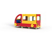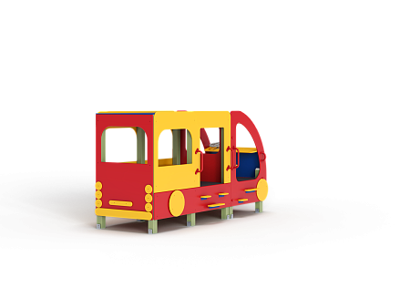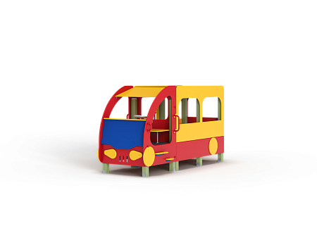 Автобус состоит из двух площадок в виде кабины и кузова с бортовыми фанерными ограждениями иммитирующих детали автобуса. Кабина имеет вход с двух сторон, по две ступеньки и по две ручки с каждой стороны, вращающийся руль и сидение. Кузов - площадка, имеющая один вход и скамейки внутри. У входа в кузов установлены три ступеньки и две ручки.