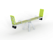 Качалка-балансир состоит из деревянного бруса длиной 2000 мм который крепится болтовым соединением на металлическом основании, качение производится с помощью подшипников качения. По краям деревянного бруса установлены металлические каркасы сидения с фанерными спинками и амортизирующие демпфера из армированной резины.