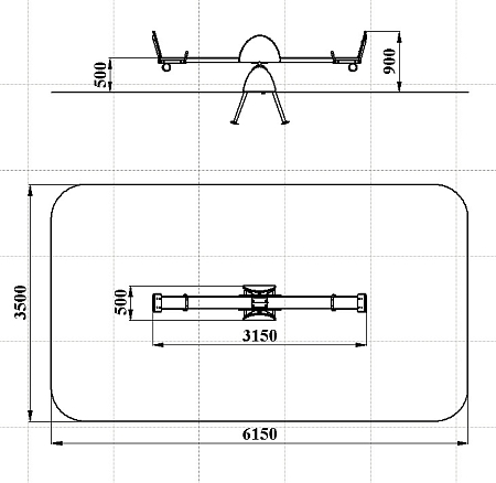 Качалка-балансир состоит из деревянного бруса, который крепится болтовым соединением на металлическом основании, качение производится с помощью подшипников качения. По краям деревянного бруса установлены металличесие каркасы сидения с фанерными спинками с художественным оформлением в футбольной тематике и амортизирующие демпфера из армированной резины. По бокам металлического основания и по бокам бруса (в центре) крепятся декоративные фанерные накладки с художественным оформлением в футбольной тематике.
