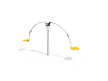 Качалка-карусель состоит из металлического дугообразного коромысла с сидениями по краям и центральной несущей стойки. Коромысло крепится болтовым соединением к особому не разрушаемому шарниру, который в свою очередь крепится к несущей стойке. Качение производится при помощи особого шарнира, а вращение вокруг своей оси производится с помощью подшипников установленных в несущей стойке. При работе шарнира исключены места трения металлических компонентов шарнира, что в свою очередь влияет на долговечность, сокращает эксплуатационные расходы и позволяет шарниру работать практически без шума. Все металлические элементы выполнены из стали с оцинкованным покрытием. Оцинковка металла производится методом электрохимической гальванизации.