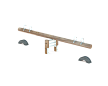 Качалка выполнена в виде бревна с четырьмя ручками, раскачивающемся на шарнире. Амортизаторами по краям служат вкопанные автошины. Ручки выполнены из нержавеющей стали. Бревно изготовлено из тщательно отшлифованной древесины высочайшей прочности и окрашено высококачественным лаковым покрытием.