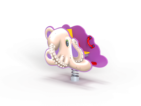 Качалка на пружине в форме осминожки изготовлена из фанерных элементов с ручной художественной росписью и металлических элементов с пружиной.
